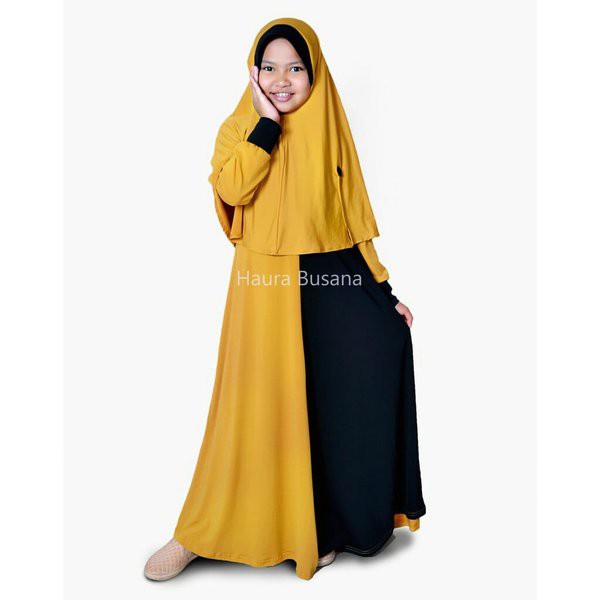 6+ Model Baju Gamis Anak Perempuan Terbaru Kancing Depan Cream Kuning